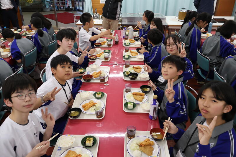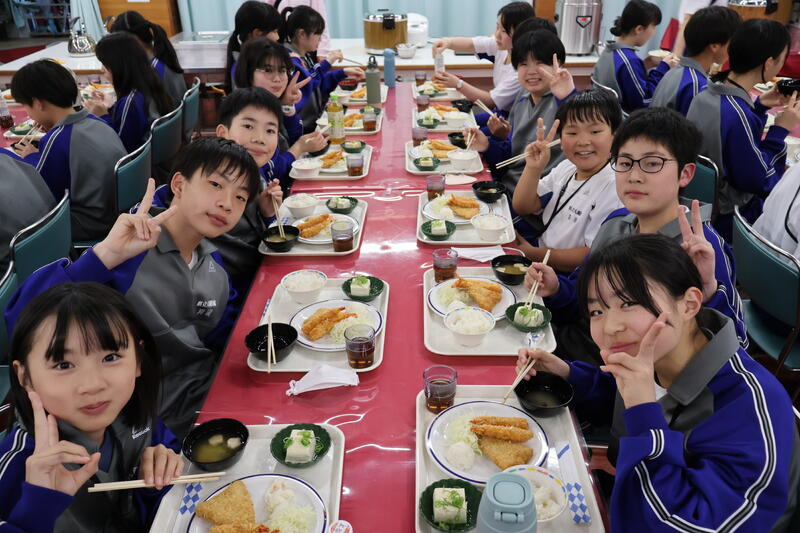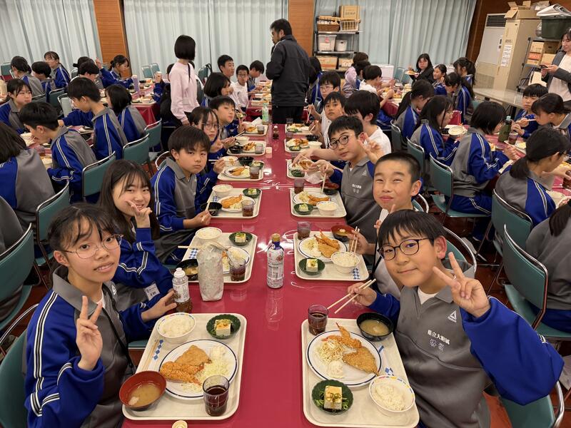 午後の実習や講義を終え、待ちに待った夕食です。みんなでおいしくいただきます。この後は写真撮影です。