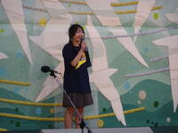 1年生の群読では、「これから ~未来のわたしを見つめる~ 」をテーマに『おにぎりぼうやのたびだち』『空中ブランコ乗りのキキ』『少年の日の思い出』『~になりたい』『いっしょけんめい』『明日』『生きる』を披露しました。「コミュニケーション」の授業や講師の先生に教えていただいた表現方法を活用し、1年生らしい活気あふれる群読になりました。