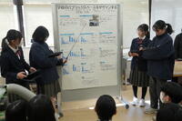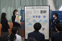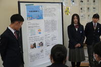 2月17日(火)12時40分より、2年生が中間発表として、今年度の探究成果を発表する「プロジェクト学習ポスターセッション」を実施しました。全10班が1年間の探究活動の結果をポスターを用いて発表しました。