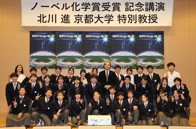 SPring-8からお誘いいただき、今年のノーベル化学賞の受賞が決まった北川進特別教授(京都大学)の講演会に1年生70名が参加させていただきました。