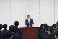 4月9日(木)に離任式が行われました。これまで本校の教育活動に多大なるご尽力をいただいた先生方が、本校を離れられることとなりました。式では、校長先生からの感謝の言葉に続き、離任される先生方一人ひとりから、生徒への温かいメッセージが送られました。また、生徒を代表して、これまでお世話になった先生方へ感謝の言葉が贈られました。