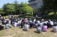 一昨年は、新型コロナウイルス感染症の影響で中止、昨年は雨天のため食堂に避難と十分な訓練ができませんでしたが、今年は予定通り県立大学理学部グラウンドまでの避難訓練を行うことができました。