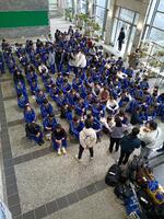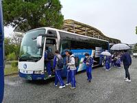 あいにくの雨模様となりましたが、生徒たちの表情は晴れやか。出発前の高揚感とともに、笑顔があふれる中でのスタートとなりました。