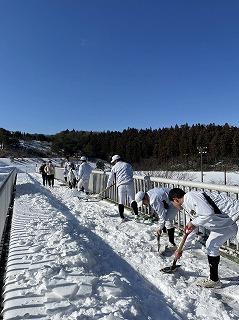 そのため練習の後、除雪作業をおこないました。土の上で野球ができる喜びを再確認できたのではないかと思います。