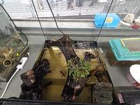 昨日お出迎えしたアカハライモリたちの住処もいい感じに仕上がりました。