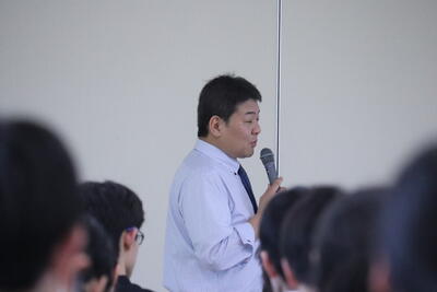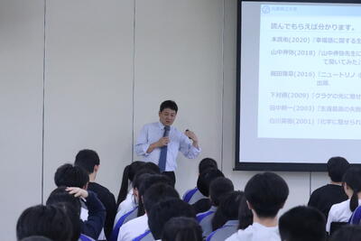 講演では、ご自身の経験を交えながら、進路の選び方や大学での学びについて、わかりやすくお話しいただきました。