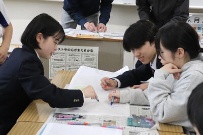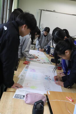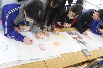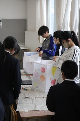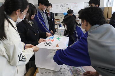 学年を越えて班を編成し、中学生と高校生が協力して制作に取り組みました。