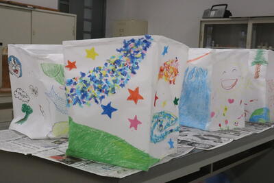 初めは緊張していた中学生も、高校生が優しく教える中で次第に打ち解け、みんなでランタンに思い思いの絵を描きました。