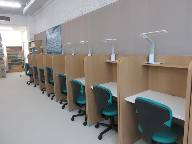 ・書架や個別ブース、カーペットやカーテンを新調し、従来のテーブルに加えてラーニングテーブルを置きました。