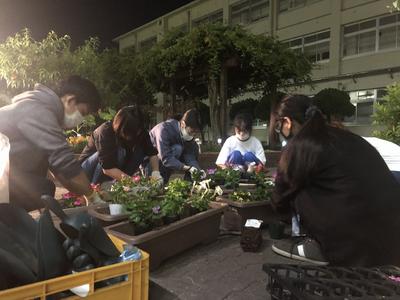 ボランティア同好会 ボランティア同好会は、校内を美しくするために、生徒昇降口前の花に水をやり、植え替えを行って環境美化につとめています。また、自分たちで育てた花を押し花のしおりにし、地域の子供たちやご高齢の方に贈るなどのボランティア活動をしています。興味のある人は、ぜひ一緒に活動しましょう。 活動風景