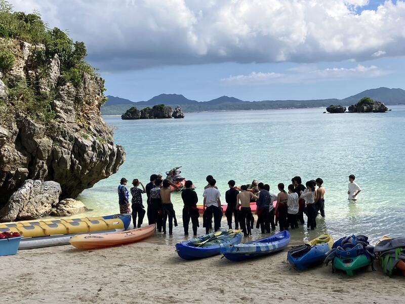 2日目の午後からは、天気にも恵まれてマリンスポーツ体験やシーサー色付け体験を行いました!シュノーケリングやカヤック、ドラゴンボートなどを楽しみました。