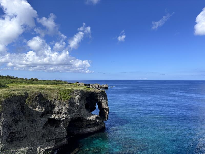 午前は万座毛を見学し、大自然を満喫しました。今からアメリカンビレッジへ向かいます!