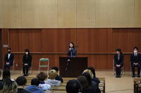 生徒会執行部のメンバーがお礼のメッセージを申し上げ、花束をお渡ししました。
