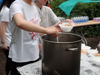 2年生の学年団の先生たちから出された問題に正解しゴールを目指すゲームをしました。防災に関する問題もあり、防災について改めて考える機会になりました。ゴールには、防災かまどで作った豚汁が用意されており、とても美味しかったです。。