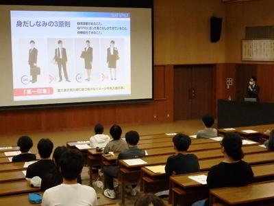 入学して間もない1年生に2つのテーマで講義をしていただきました。