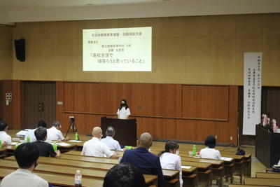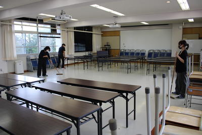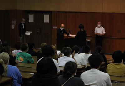 1学期の生徒総会と同じく全校生徒が講義棟に集まって行いました。