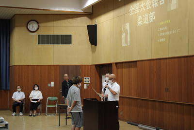今回の終業式では、全校生で校歌斉唱しました。また、2学期に部活動、生活体験発表、錦城高校キャラクターなどで頑張った生徒を表彰しました。
