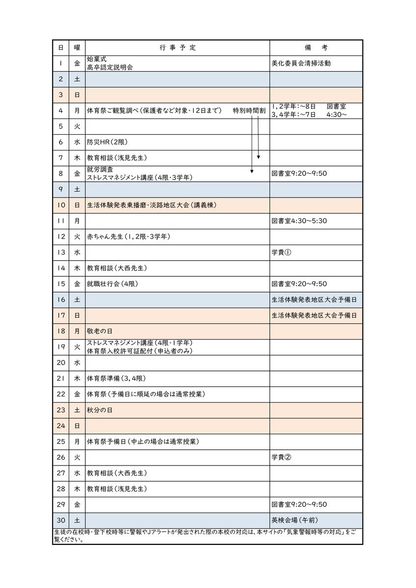 9月行事予定