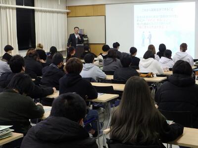 第1学年 社会人講話 (11月26日) 投稿日時 : 11/28 錦城高等学校管理者 企業の採用担当者の方を講師としてお招きし、高校生活の過ごし方や就職の心構え、採用面接での注意点などをお話していただきました。