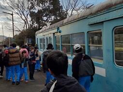 明けましておめでとうございます。1月14日(水)、中学部では新年の行事として学部歩行で近くの金毘羅神社と鍛冶屋線記念館に行ってきました。金毘羅神社に、お参りした後、公園で体をいっぱい動かして遊びました。鍛冶屋線記念館では、昔の電車をバックに記念撮影をしました。