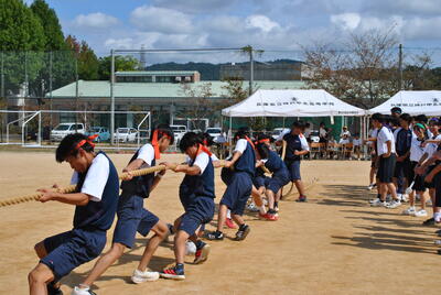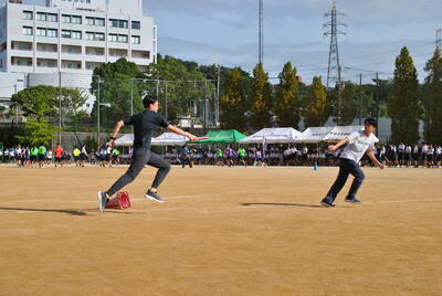 天気は快晴。神戸甲北高校の2年次・3年次生とともに、元気いっぱい競技に取り組みました!クラス対抗リレーや綱引き、大縄跳びではクラスの団結力が光り、大いに盛り上がりました!