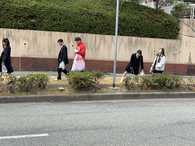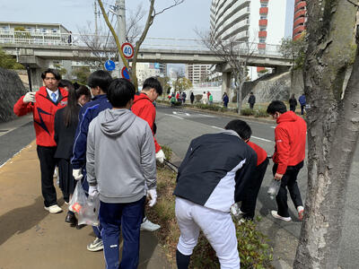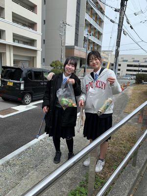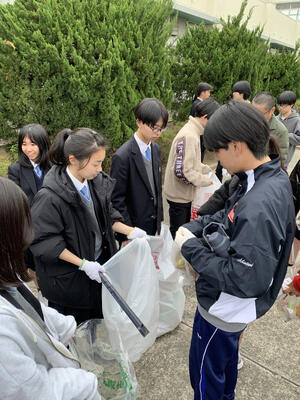 令和8年3月6日に、高校生ふるさと貢献活動の一環として、本校生・本校職員・PTAの方々・地域の方々が一緒に学校から名谷駅付近まで清掃活動を行いました。生徒会、各クラスの代表の管理委員の生徒たち、部活動の生徒たち有志などが主体となってPTAや地域の方々と一緒に各コースに分かれてごみを集めました。学校に持ち帰ったゴミは燃えるゴミ・燃えないゴミに選別をして清掃活動を終了しました。ご協力くださった地域の皆様、PTAの皆様ありがとうございました。地域との結びつきが強まるように今後も活動を続けていきたいと思います。