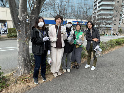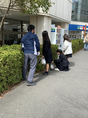本校から明石市民会館まで移動しながらゴミ拾いを行いました。
