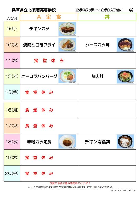 ※ 今年度の食堂の営業は、2月18日(水)までです。