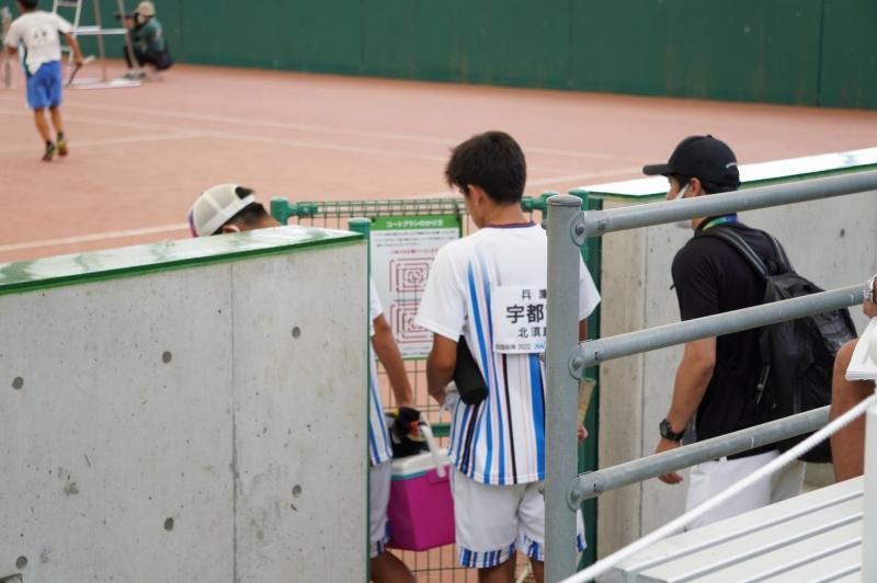 2回戦の相手は滋賀の綾羽高校。第5シードで昨年のインターハイでも活躍した選手。1ゲーム目を先取しましたが、自力で上回る相手に徐々に主導権を握られて1-4で敗退。しかし、随所に好プレーを連発し、初出場ながら見事なテニスを見せてくれました。