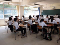 生徒は、メモを取りながら熱心に授業を受けていました。