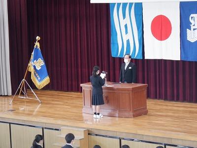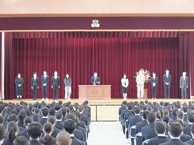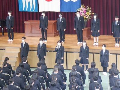 その後1学期の表彰伝達、生徒会執行部の認証式と近畿大会・全国大会に出場・出品する部活動の壮行会を行いました。