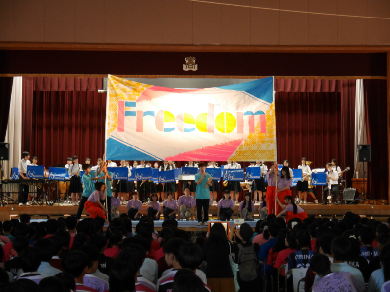 また、国体に出場する水泳部、全国大会に出場する美術部、近畿大会に出場する陸上競技部、放送部、サイエンスクラブの壮行会を行いました。