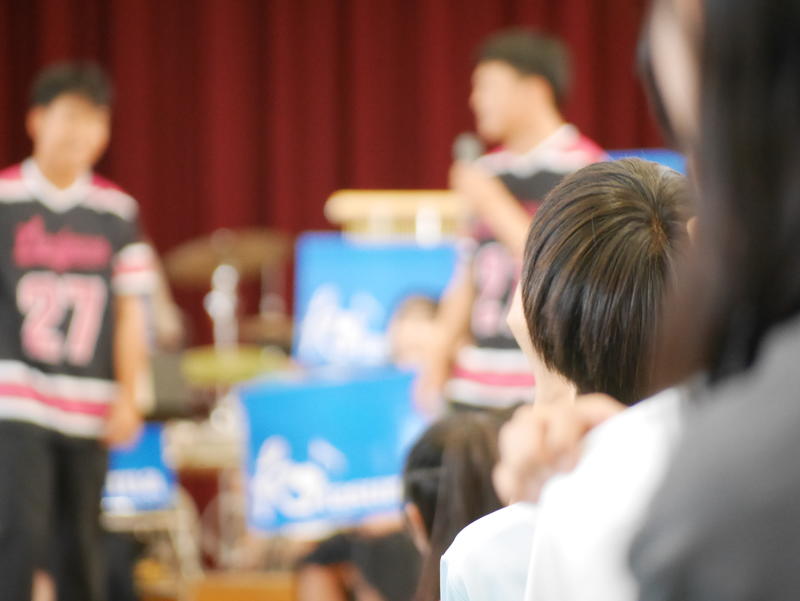 背筋をピンと伸ばし、キラキラした瞳で校長先生のお話を聞く生徒たちの姿。