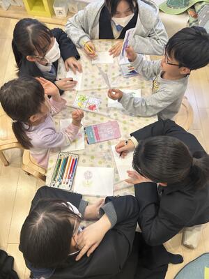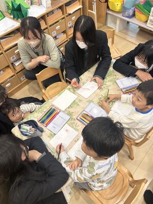 〇11/13(木)花だんに飾るプレートづくり:とっても上手にお絵描きしてくれました!2歳児~5歳児まで、思い思いに色を塗ったり、お花の絵を描いてくれました。