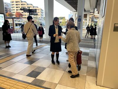 〇11/14(金)名谷駅で配布:たくさんの地域の方にお配りしました!「たねだんごって何?」「どんな花が咲くの?」地域の方とたくさんお話しさせていただきました。お声がけいただき、ありがとうございました。