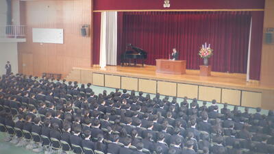 入学式では校長先生から、寄生虫学者の吉田貞雄氏が提唱した、夢をかなえるための8つのプロセスをまとめた「夢八訓」についての訓話がありました。夢→希望→目標→計画→行動→実績→反省→進歩の順で、夢を実現し、自己成長し続ける重要性を説かれました。