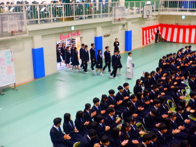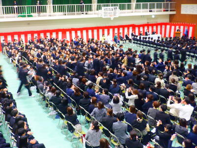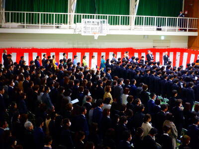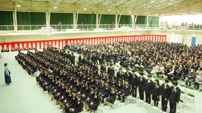 来賓、PTA、地域、保護者などたくさんの方々のご臨席を賜り第52回生卒業生は立派に巣立っていきました。これまでの学校活動へのご理解やあたたかいご支援に感謝申し上げるとともに、これからの北須磨高校に対しても応援いただけると幸いです。ご卒業おめでとうございます。教職員一同より、心からお祝い申し上げこれからの卒業生の頑張りやご活躍を期待しています。