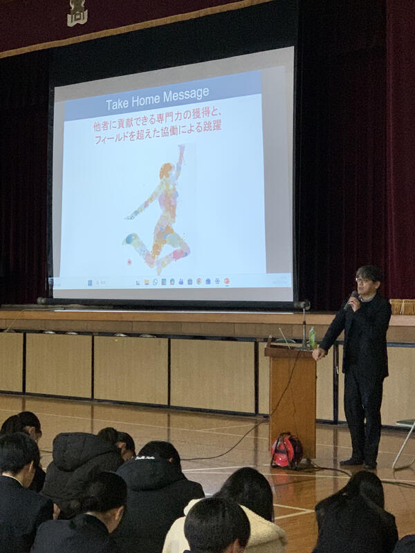 和田先生からのメッセージとして、専門分野に関わらず「他者に貢献できる専門力の獲得と、フィールドを超えた協働による跳躍」について北須磨高校生に期待を寄せていただきました。