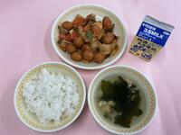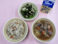 給食週間最終日です。今日は淡路の食材、淡路玉ねぎとワカメを使った給食です。