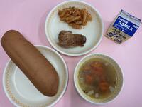 コッペパン 牛乳 ハンバーグデミグラスソース ゆで野菜 ポトフ風スープ