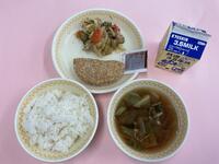 牛肉とごぼうのまぜごはん 牛乳 野菜と厚揚げのそぼろ炒め すまし汁