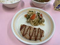 今日の給食は、いわゆる「肉じゃが」なのですが、人それぞれイメージする肉が違うかなと思い、わかりやすい名前にしました。