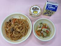 本校の給食では調理や配膳のしやすさを考えて、スパゲティよりもペンネマカロニを使うことが多いです。穴があいたペンネマカロニは、ソースがからみやすいので、今日のようなナポリタンソースやクリームソースと相性がいいです。