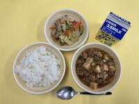 ごはん 牛乳 マーボードウフ ひね鶏のサラダ