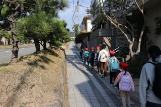 これまでの行事では6年生がリーダーをしていましたが、今回のリーダーは3年生です。気合いっぱいの「えいえいおー!」の掛け声とともに出発し、バスで垂水駅まで向かいました。