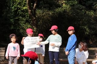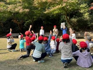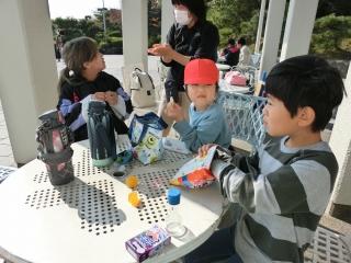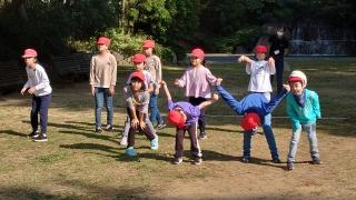 到着後、前半は6年生が考えてくれたゲームをみんなで楽しみました。お弁当を挟んで後半は自由遊び。公園の遊具で遊んで走って、時間ぎりぎりまではしゃいでいました。