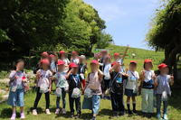 みんながあおむしになり、お家の人と一緒に果物狩りに出発!