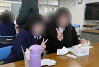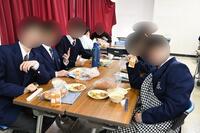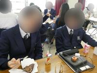 昨年度に引き続き、普段は学年別で食べている給食を大会議室で班ごとに分かれていただきました。先輩との会話も弾み、いつもより楽しい昼休みとなりました。
