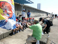 垂水駅からは、休憩をはさみながら、歩いて海釣り公園まで向かいました。昨日の疲れもあり、始めは足どりが重かったのですが、行き交う電車に励まされながら、何とか目的地を目指し、海が見えてくると一気に表情が明るくなりました。