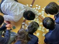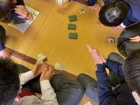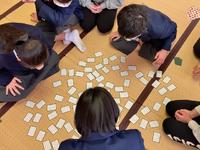百人一首では、自分の得意札が読まれると素早い動きで札をとる姿がたくさん見られました。各班とも、白熱した戦いになりました!